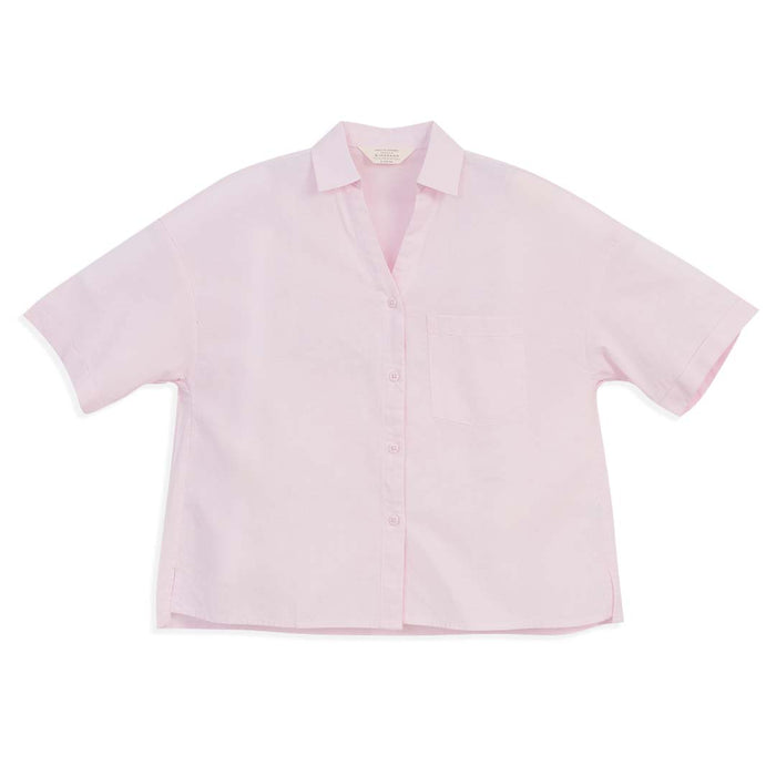 GIORDANO Women's Linen Cotton Poplin V-Neck Short Sleeves Loose Fit Front Placket Shirt (05346209)