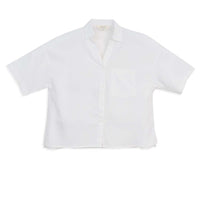 Product details of GIORDANO Women's Linen Cotton Poplin V-Neck Short Sleeves Loose Fit Front Placket Shirt (05346209)